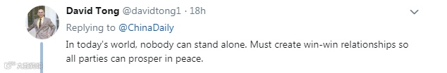 在当今世界,没有人是一座孤岛。我们必须共建双赢的关系,各方都能在和平中发展。