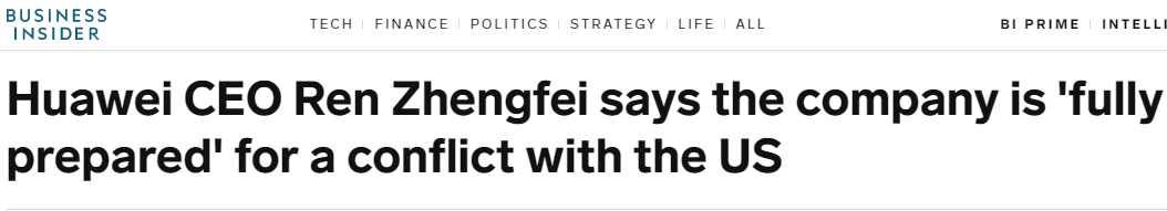 商业内幕网:华为CEO任正非说,对和美国的冲突已“完全准备好”