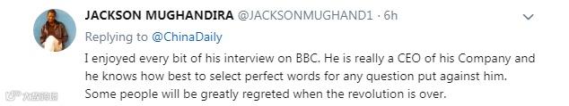 在China Daily推特官方账号发出的任正非接受采访帖文下,不少外国网友盛赞任正非的气量和企业家胸怀。