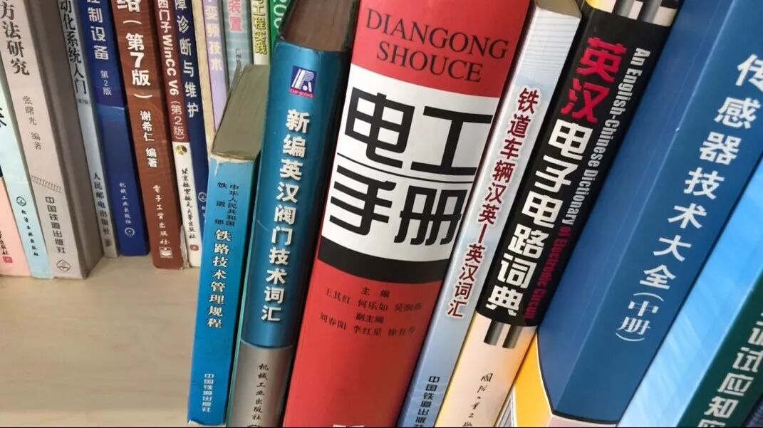 我跟着同行记者一起来到罗昭强的创新工作室,一间80平左右的房间里,墙上挂满了获奖证书和专利证书。室内大部分的空间都被调试设备占据了,供大家随时来练手,打磨技术。在靠墙的一排架子上,摆满了各类书籍,我细细翻了一下,有不少专业英语词典。