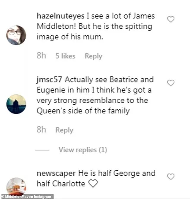 “我看到了詹姆斯·米德尔顿(凯特弟弟)的影子!但他和妈妈简直就是复制粘贴。”