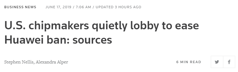 文章提到,甚至华为自己都没有向美国政府游说(Huawei itself avoids typical government lobbying),但是美国芯片供应商却先按捺不住了。