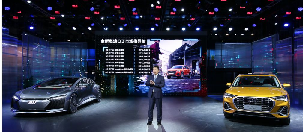 At the Shanghai auto show, Audi's all-new Q3 made its Chinese debut and hit the market at suggested prices ranging from 271,800 yuan to 359,800 yuan ($40,500 to $53,700).