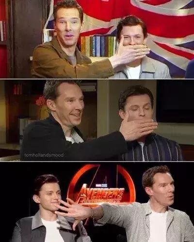 为此,漫威专门安排奇异博士扮演者本尼迪克特·康伯巴奇(Benedict Cumberbatch)和荷兰弟一起参加访问,及时制止他,看卷福的捂嘴三连: