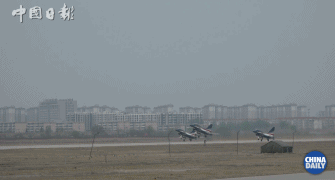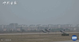 三架歼-10表演机同步起飞 中国日报 孟哲摄