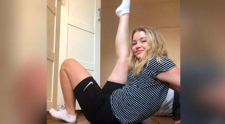 在校学生安妮·贾勒特在推特上发出她穿短款紧身裤,做高抬腿动作的照片。