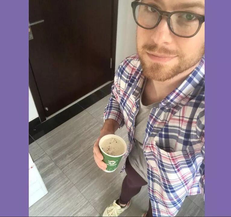 一位男性在Ins账号上,发布一张他穿紫色紧身裤的照片。