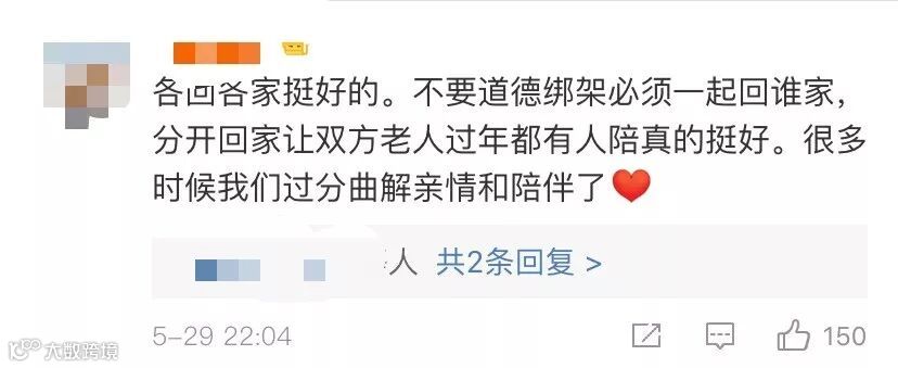 有些网友对这种只陪自己父母过节的方式表示支持,称“各回各家挺好的”。