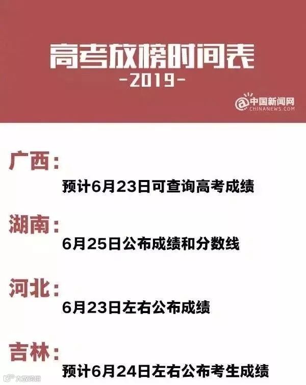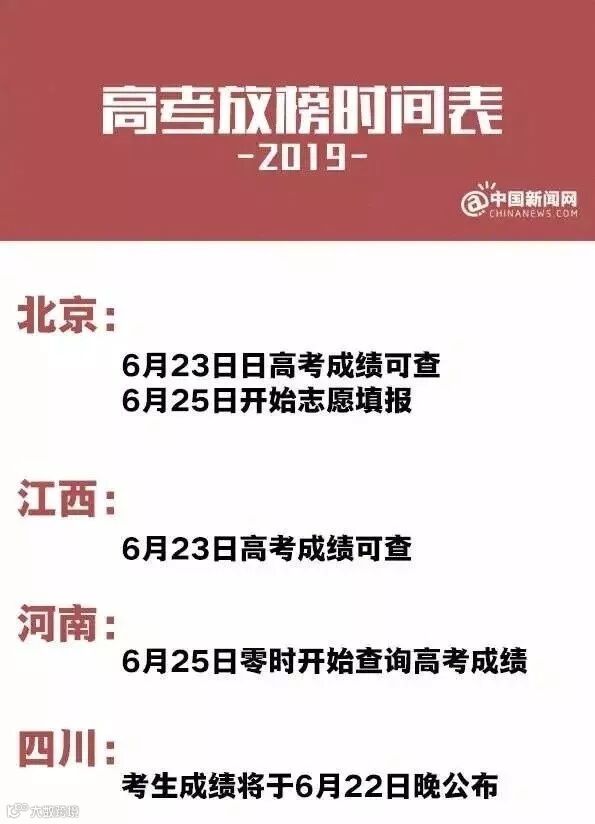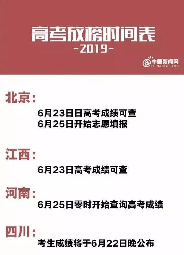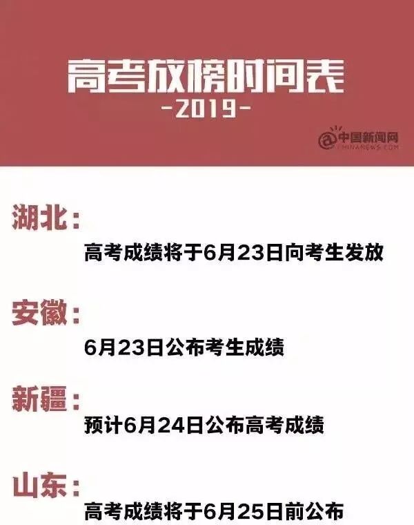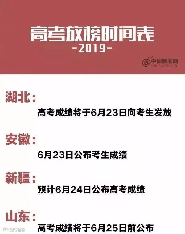 下面,双语君送上一组2019年高考放榜时间表(不完全统计)。