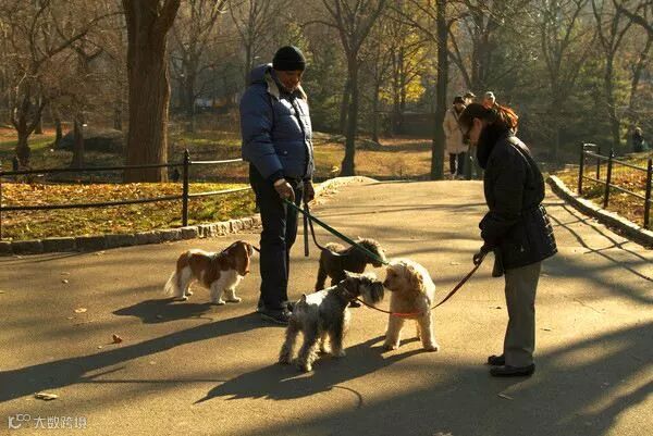 leash:[牵狗的]绳子、皮带(on/off a leash) droppings:鸟兽的粪便