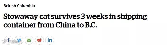 除了奇纳,之前也发生过类似事件。据加拿大媒体报道,一只六岁大的橘猫误困在从深圳运往加拿大的集装箱内,长达3周。