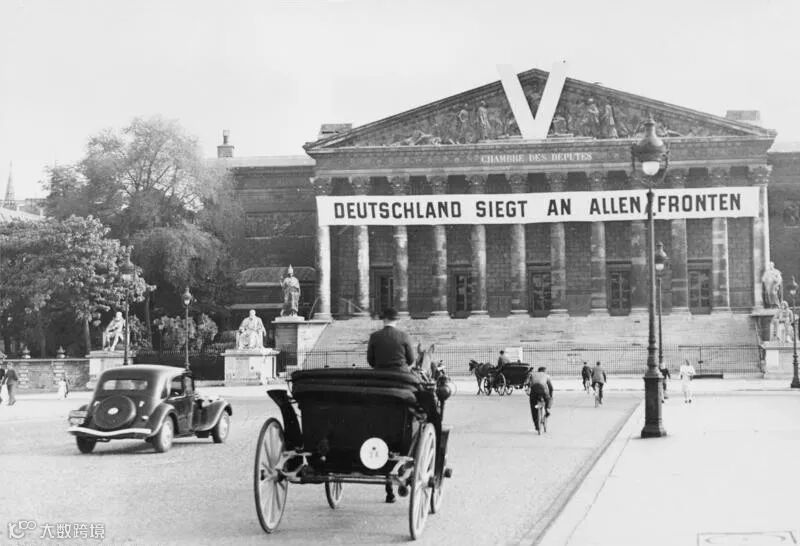 纳粹德国占领法国期间,巴黎的很多建筑物都张贴了V字标识