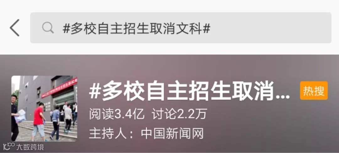 截止4月1日中午,微博话题#多校自主招生取消文科#已经获得3.4亿的阅读量和2.2万的讨论