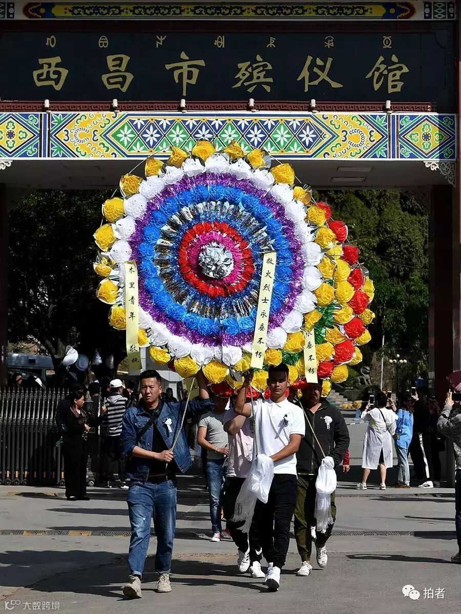 殡仪馆外陆续有西昌市的市民带着鲜花、哈达、花圈赶到,祭奠遇难人员。