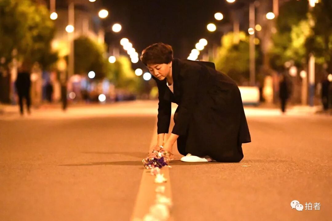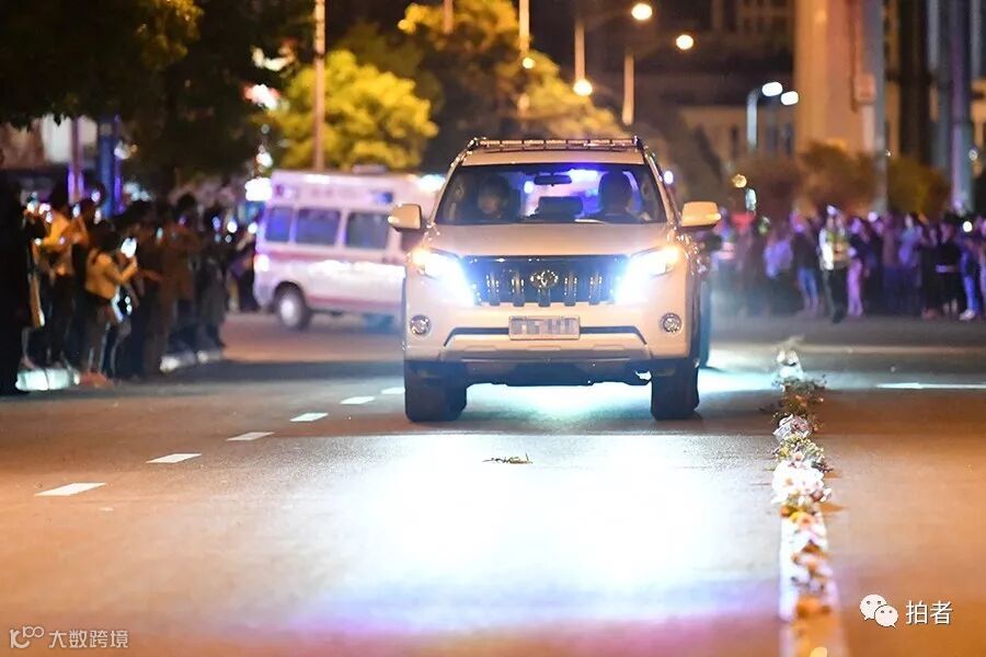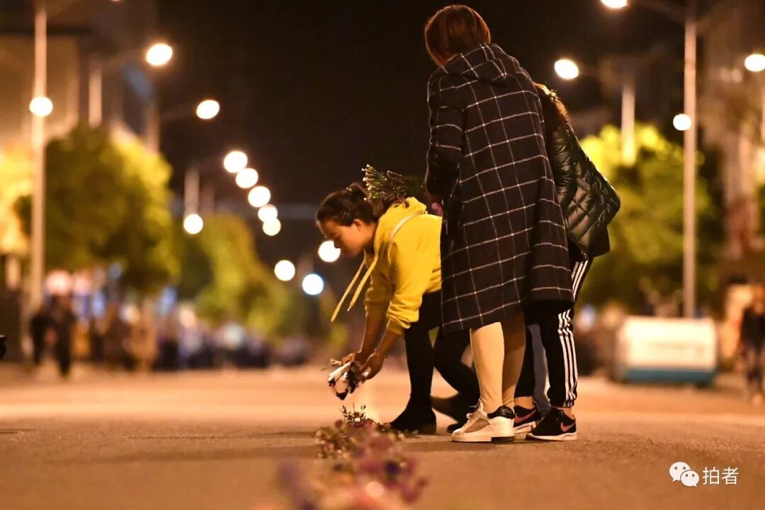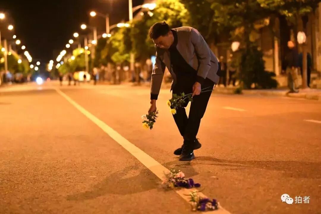 车辆到达之前,等在现场的群众已将鲜花摆在路旁。
