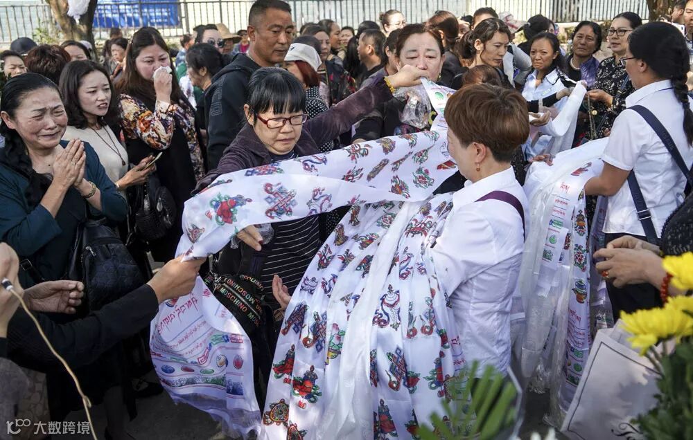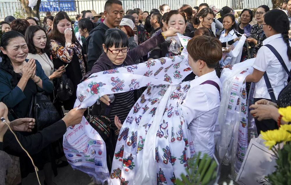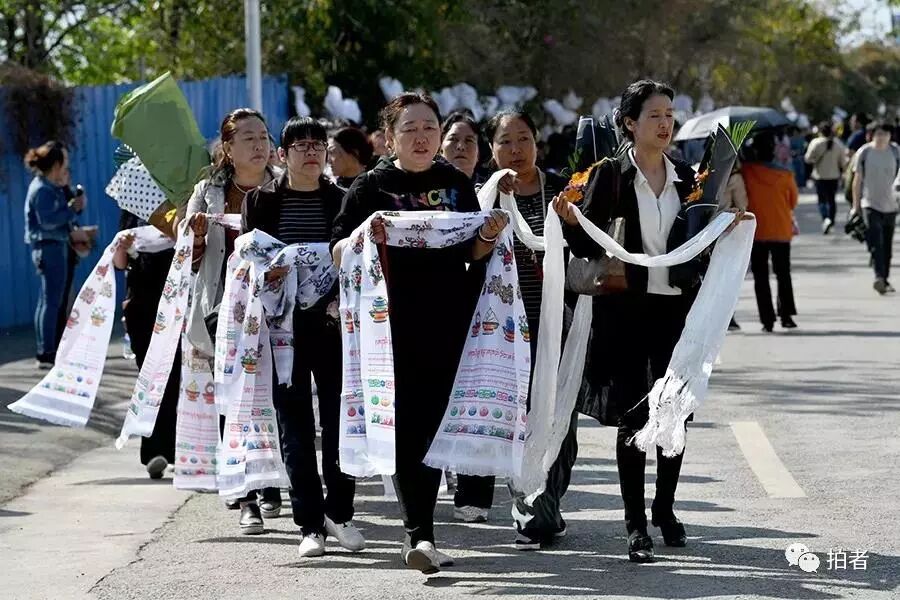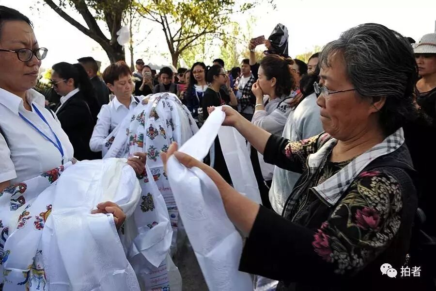 大约3000名市民自发前去殡仪馆悼念,他们手里拿着菊花、花环和白色的哈达祭奠亡灵。