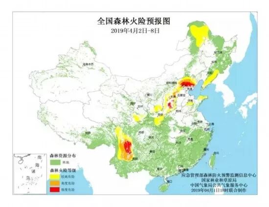 预计4月2日至8日,北京北部、天津北部、河北北部、山西、四川南部等地森林火险等级将维持在极度危险级别,要切实加强防范森林火灾的发生。