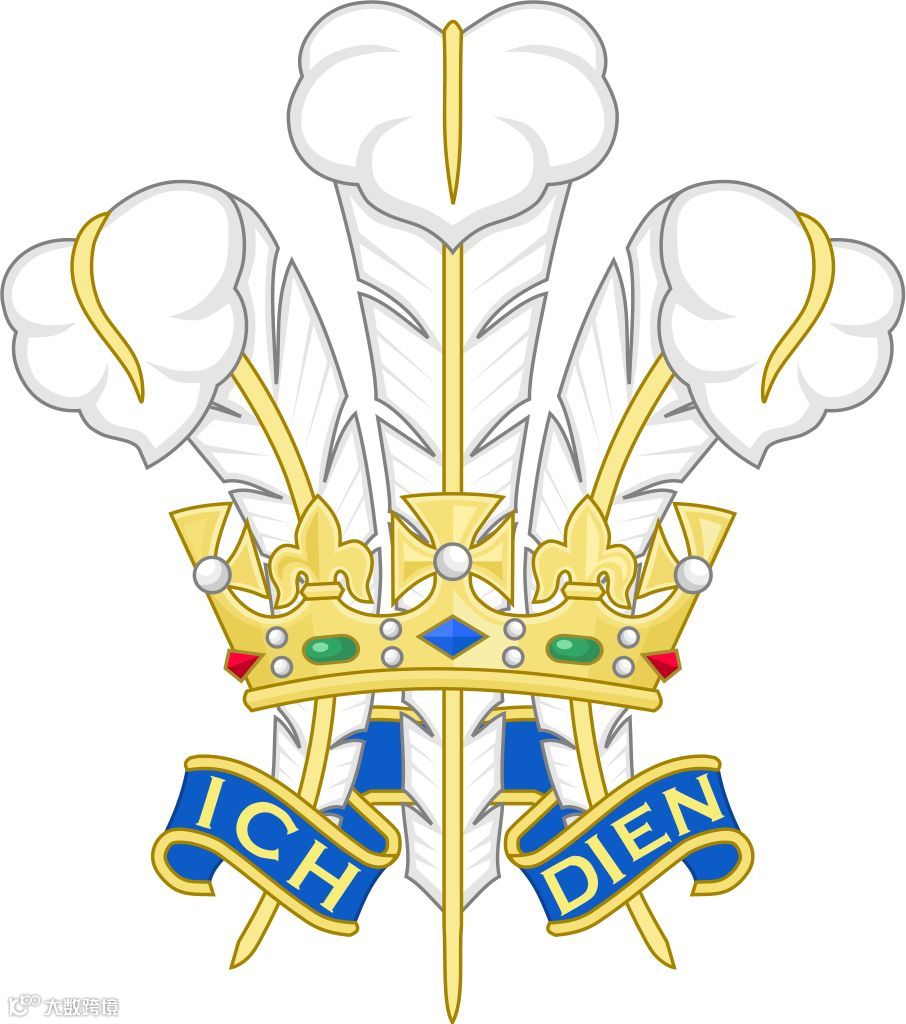 鸵鸟羽毛,威尔士亲王的象征标志。铭文 Ich dien 是德语,译为英语是 I serve。