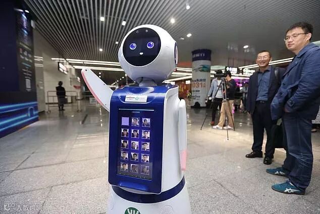 The security robot, also equipped with facial recognition cameras, would capture clear shots of passengers' faces to spot criminal suspects at the train station.