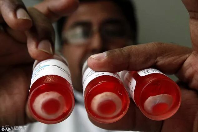 斯里兰卡眼捐献协会的工作人员举着三枚准备送出国外的眼角膜