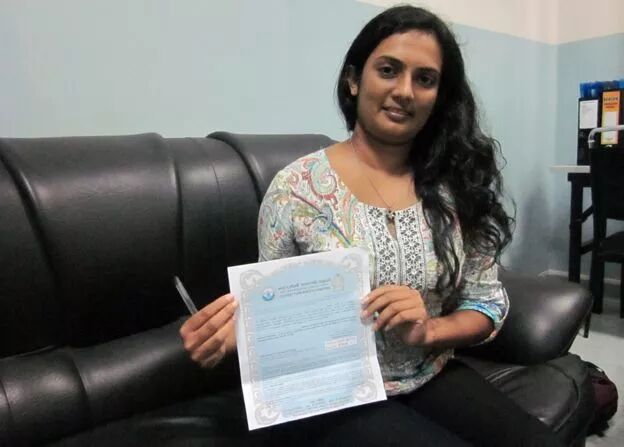 斯里兰卡居民Pasadi举着她的角膜捐献证书。图源:BBC