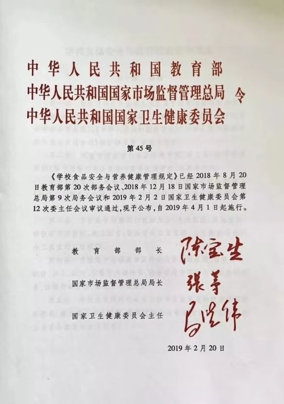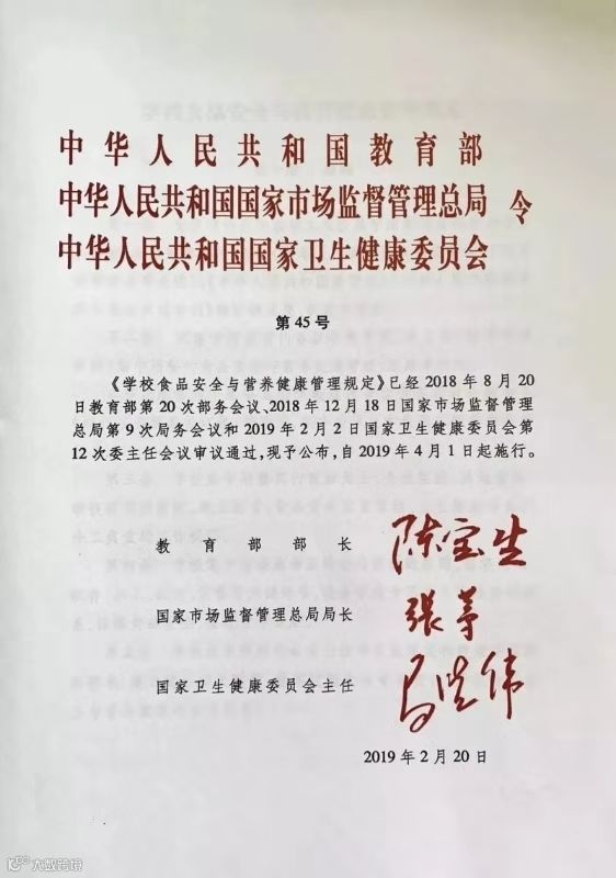 据教育部网站消息,《学校食品安全与营养健康管理规定》(下称《规定》)近日发布。