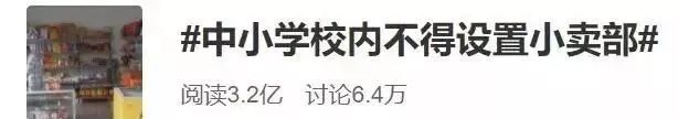 截至13日下午,新浪微博热门话题“中小学校内不得设置小卖部”已获3.2亿阅读量,6.4万网民发表评论。