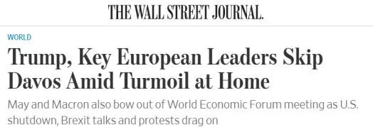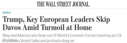 在国际政治局势蹒跚前行,全球经济前景不甚明朗的大背景下,美英法三国领导人同时缺席达沃斯,成功“霸屏”外媒报道。