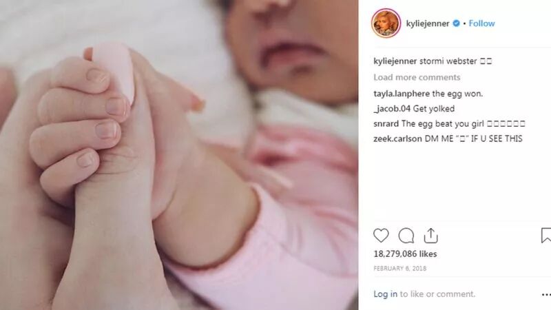The post from February 2018 was the first photo of Jenner's newborn daughter, announcing the baby's name, Stormi Webster.