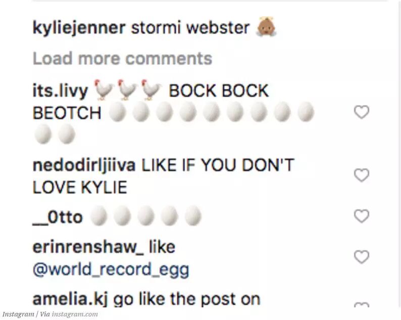 现在,凯莉-詹娜发布的帖子已经被与鸡蛋有关的评论淹没 。