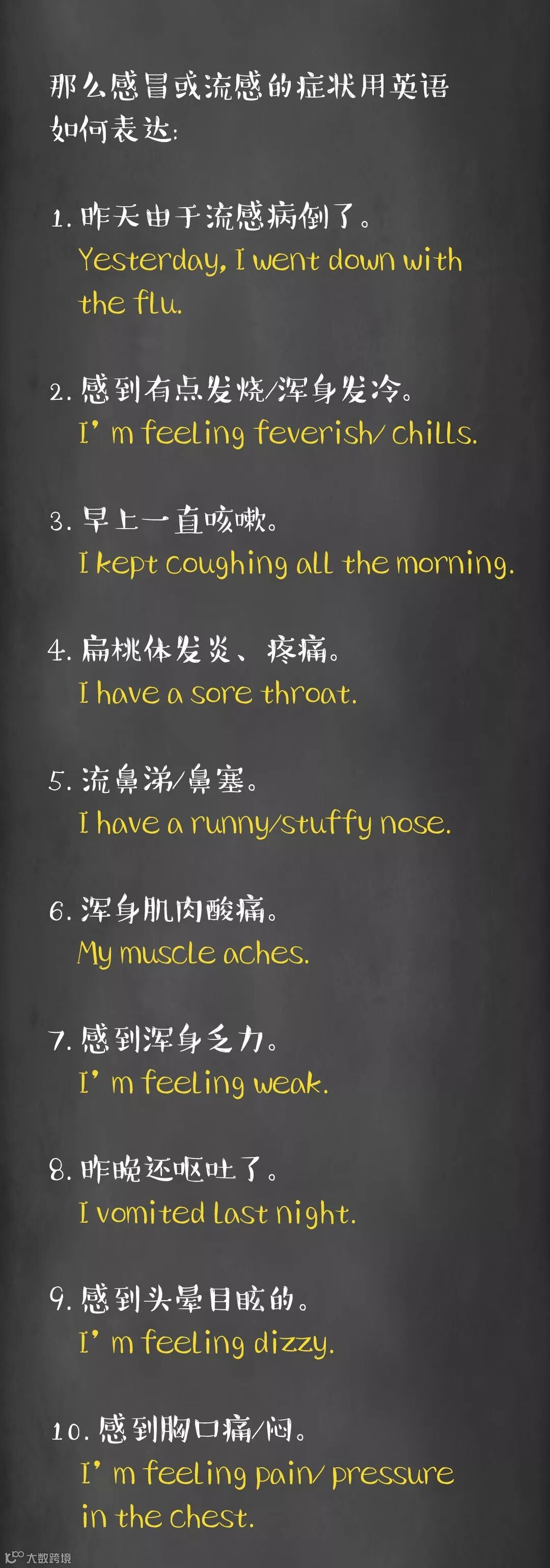 流感,英文flu,全称为influenza,词典中的定义是:An infectious disease like a very bad cold, that causes fever, pains and weakness一种传染性的疾病,症状像非常严重的感冒,通常会引起发热、酸痛和乏力。流感的罪魁祸首是“流感病毒”——influenza virus,流感病毒通过空气就能传播(air-borne),所以流感的爆发都是成片成片的,很有可能波及一整个国家,甚至跨越国境线影响世界。流感,英文flu,全称为influenza,词典中的定义是:An infectious disease like a very bad cold, that causes fever, pains and weakness一种传染性的疾病,症状像非常严重的感冒,通常会引起发热、酸痛和乏力。流感的罪魁祸首是“流感病毒”——influenza virus,流感病毒通过空气就能传播(air-borne),所以流感的爆发都是成片成片的,很有可能波及一整个国家,甚至跨越国境线影响世界。都是成片成片的,很有可能有可能很有可能有可能