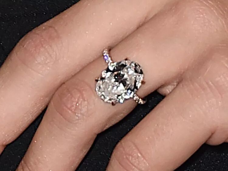 目前最火的订婚戒指当属椭圆形钻石戒指。WP Diamonds公司表示,细细的指环上镶有椭圆形大钻石的款式是最时髦的。椭圆形钻石通常是竖着(偶尔也会横着)镶嵌在戒托上,供情侣把玩欣赏。朱莉安·浩夫和海莉·鲍德温也是椭圆形钻石戒指的粉丝。