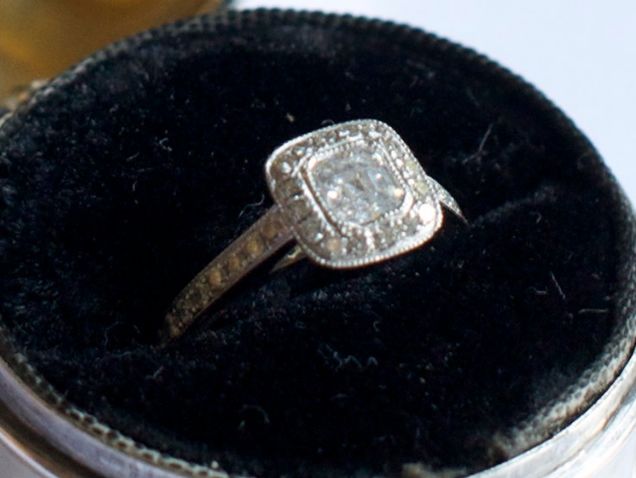 20世纪20年代,主钻周围镶一圈碎钻的戒指变得很受欢迎。钻石采购公司WP Diamonds指出,几何形状、线条锐利的钻石订婚戒指在20世纪20年代很流行,当时恰逢Art Deco装饰艺术风格盛行。祖母绿切割钻石和阿斯切钻石尤为常见,更奢华的戒指则在主钻石四周镶一圈碎钻。