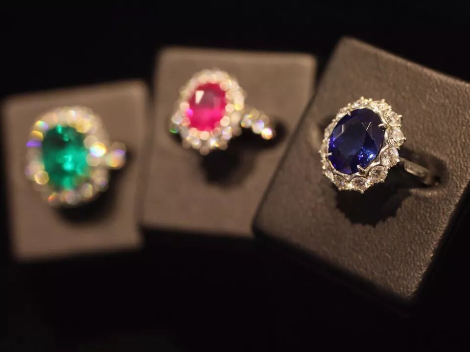 彩钻和宝石戒指