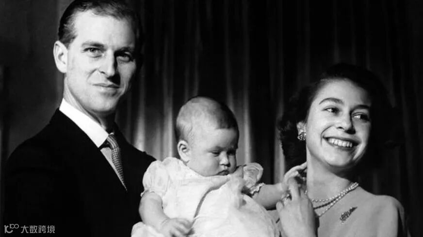 女王身边紧挨着的是一张可爱的照片,小小的查尔斯王子被抱在父母怀中。