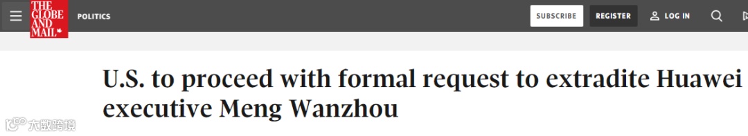 《环球邮报》:美国将向加拿大正式提出引渡华为高管孟晚舟