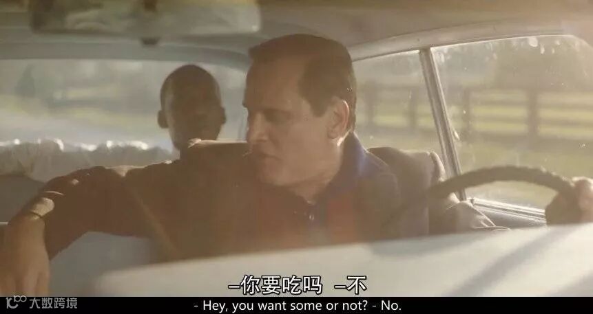 “你们黑人都喜欢炸鸡的,”白人司机对后座黑人乘客说着,递给他一个琵琶腿。