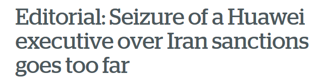 社论:因伊朗制裁而扣押华为一名高管太过了