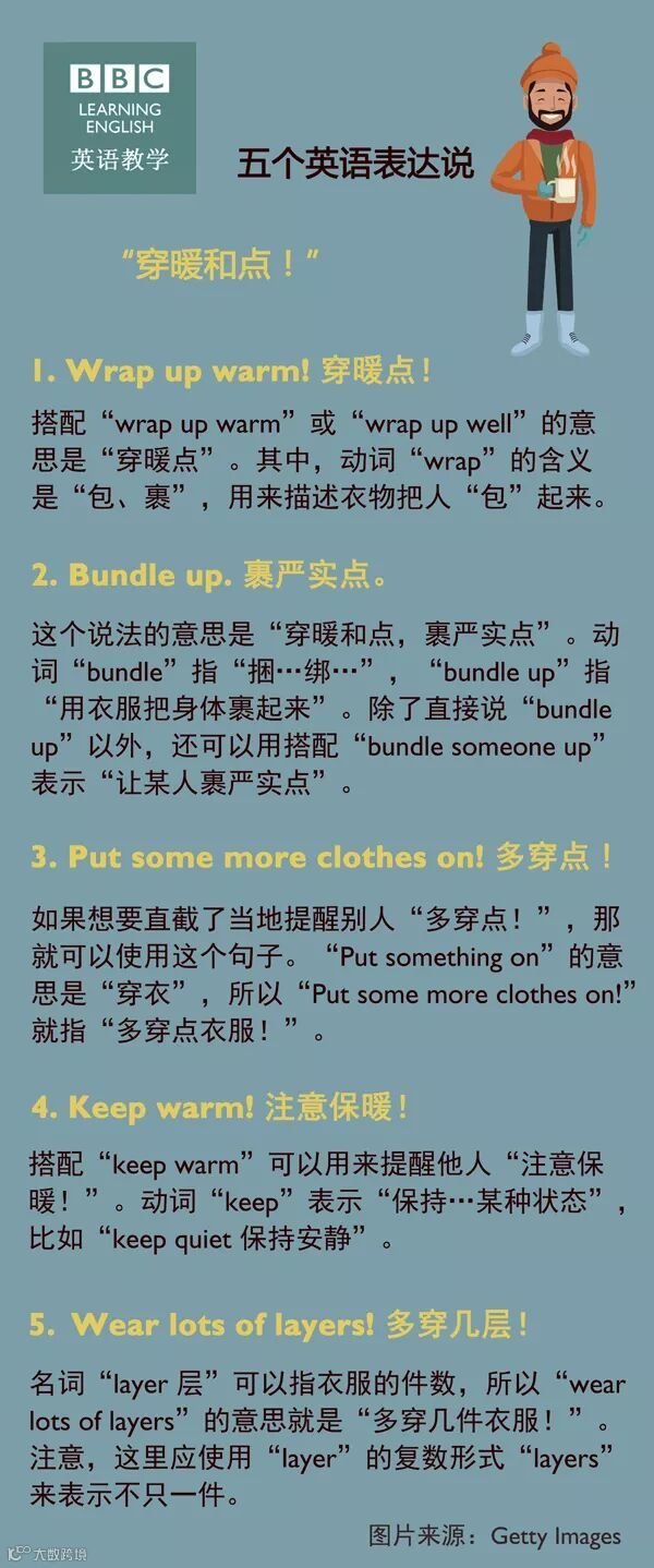 在英语会话中,怎样建议他人“要记得穿暖和一点”?学习用五个地道的英语表达说“注意保暖”。