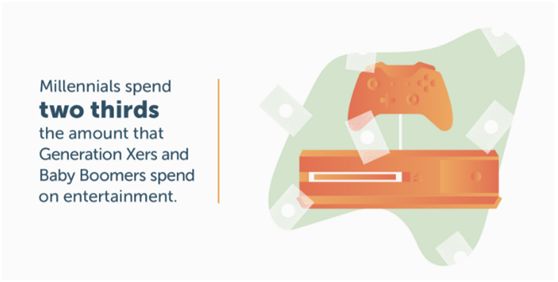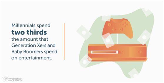也有媒体深入分析了年轻人所处的社会背景和经济状况,其实年轻人的消费并不像我们想象的那么“大手大脚”。根据lexingtonlaw.com的报道,年轻人在娱乐方面的花费其实只有他们父辈的2/3。怎么样,惊不惊喜,意不意外?