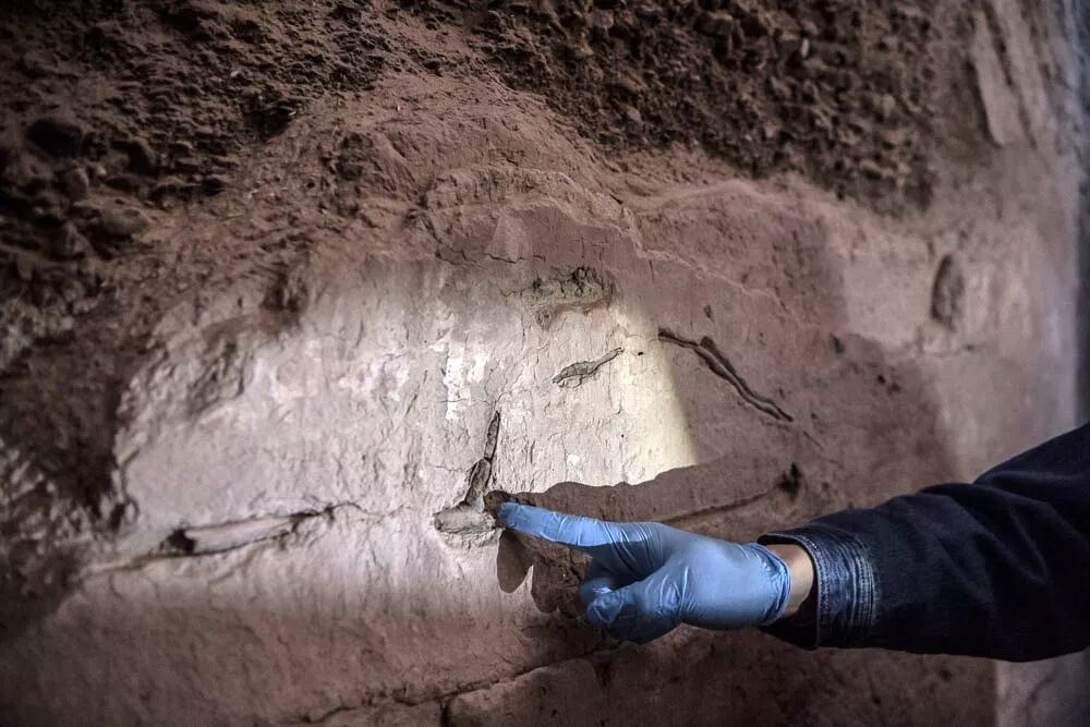 130窟内佛头上鸟类的爪痕,修复人员在佛头上清理了上百公斤的鸟粪