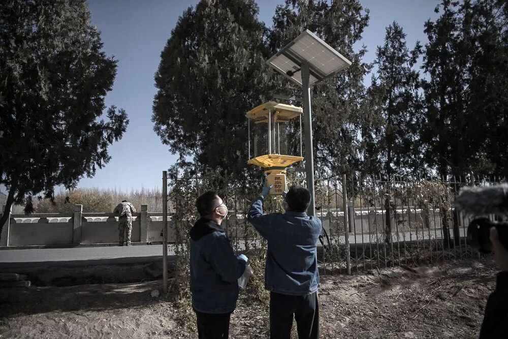 这样的害虫监测防治设备在莫高窟一共有10台,其中最远的一台距离保护研究所3公里,每次收集完都要耗费1天的时间。