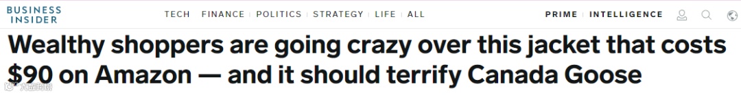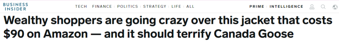 商业内幕网:有钱大佬们疯狂购买亚马逊标价90美元的上衣——这款衣服威胁加拿大鹅