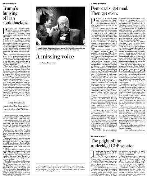5日,《华盛顿邮报》在卡舒吉评论专栏留下一片空白,题目为《消失的声音》("A missing voice")。