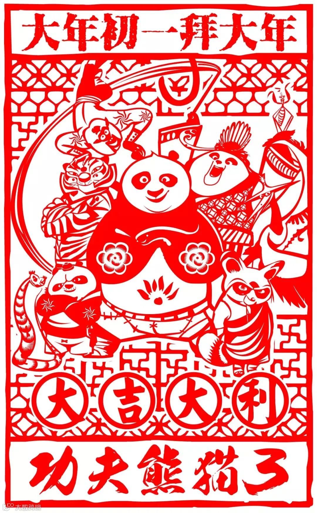 2016年春节前夕上映的《功夫熊猫3》,曾发布了两组喜气洋洋的海报,一组剪纸,一组年画,简直不要太喜庆。