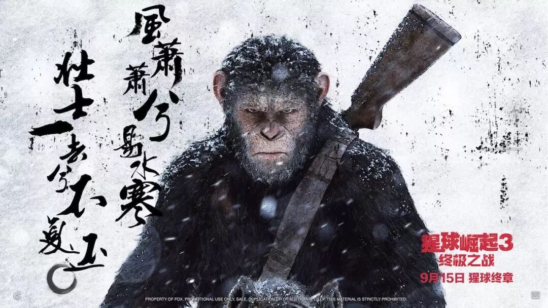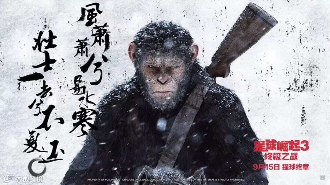 当《猩球崛起》收官之作上映前期,曾发布一系列配有中国古诗的海报图。