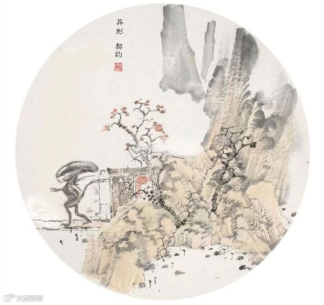 同样是重口味系怪兽的《异形》也曾穿越到中国山水画中,这创意让人不得不服。