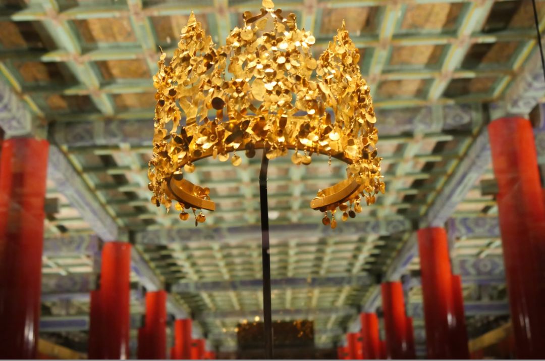 就是这个金光灿灿的一个皇冠,当时故宫办了一场展览——阿富汗珍宝展。