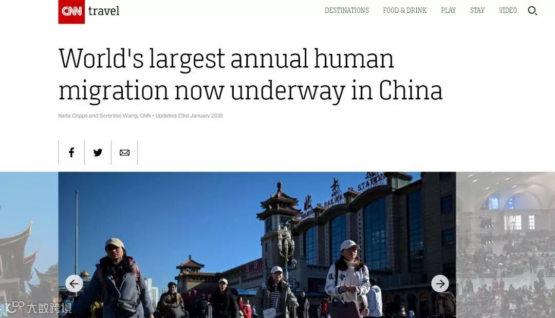 比如,美国有线电视新闻网(CNN)就发布了题为“全球一年一度的最大规模人类迁徙(world's largest annual human migration)正在中国上演”的文章。