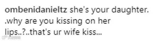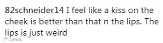 “这太美太甜了!我快30岁了,也常常和我的父母以及最亲密的朋友亲嘴啊……所有喷子们听好了……如果你们不喜欢这样,就别评论了……虽然在互联网上可以匿名,但并不是说你就可以粗鲁地对待想和你分享个人生活的名人。”